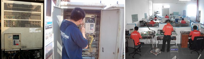 廣州污水廠一臺(tái)安川變頻器維修,他們電工是通過(guò)百度找到我們公司,據(jù)電工當(dāng)時(shí)描述:是安川變頻器無(wú)顯示,通電開機(jī)馬達(dá)可以正常使用,使用20分中后就停止工作,再次開機(jī)發(fā)現(xiàn)馬達(dá)電機(jī)不轉(zhuǎn)、設(shè)備不運(yùn)行、變頻器顯示面板沒有亮。換了一臺(tái)新安川變頻器可以正常運(yùn)行。