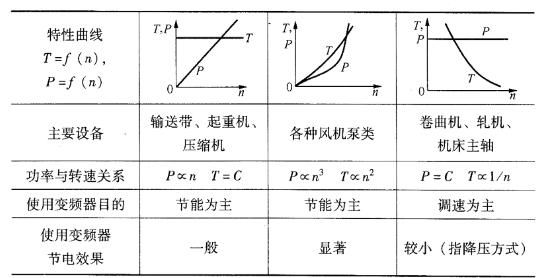 機床主軸和軋機、造紙機、塑料薄膜生產線中的卷取機、開卷機等要求的轉矩,大體與轉速成反比,這就是所謂的恒功率負載。負載的恒功率性質應該是就一定的速度變化范圍而言的。當速度很低時,受機械強度的限制,TL 不可能無限增大,在低速下轉變為恒轉矩性質。負載的恒功率區和恒轉矩區對傳動方案的選擇有很大的影響。電動機在恒磁通調速時,最大允許輸出轉矩不變,屬于恒轉矩調速;而在弱磁調速時,最大允許輸出轉矩與速度成反比,屬于恒功率調速。如果電動機的恒轉矩和恒功率調速的范圍與負載的恒轉矩和恒功率范圍相一致時,即所謂“匹配”的情況下,電動機的容量和變頻器的容量均最小。
