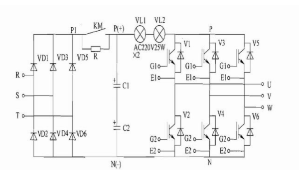 1、使用指針萬用表的直流檔測量三相輸出與地或進線零線間的電壓,正常情況下直流成分幾乎為零,如果出現直流電壓說明其中某相上下橋的一個橋導通不良,導致輸出的正負半波不對稱。2、測量三項輸出與直流母線電壓的正負端,正常情況下均分直流母線電壓,如果出現某相測量的時候大于母線電壓的二分之一或直接接近母線電壓說明此相IGBT半橋導通不良。