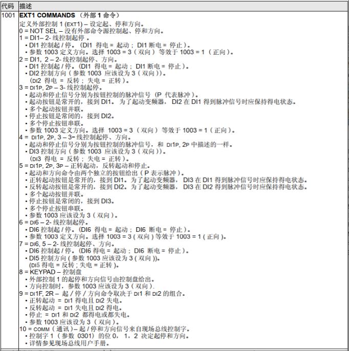 總之,這些對應上圖表中與啟停關聯的參數都必須使能才能使變頻器運行起來。如果變頻器沒有如期運行,請依次檢查1-6及10號位對應的參數。