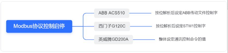 總的來說,以下三種變頻器使用Modbus協議都是通過控制字來控制變頻器的啟停,手冊中可以查詢到控制字對應的寄存器地址,不同的是英威騰變頻器是通過一個具體的值來控制變頻器的運行方式,而ABB和西門子變頻器都是通過控制字按照位功能實現變頻器運行的控制。
