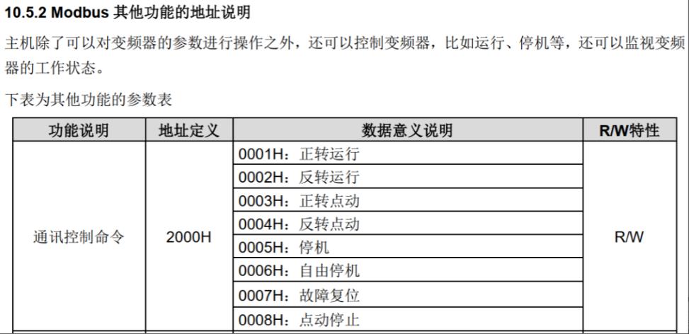 向控制字寄存器寫入0x047F,變頻器啟動;向變頻器寫入0x0476,變頻器停止。
