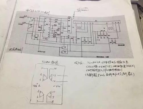 此故障有點意思,沒有驅(qū)動脈沖為什么會有+電壓產(chǎn)生,難道是驅(qū)動光耦已經(jīng)工作了,查看電路圖,將陶瓷片的1和2腳短路,發(fā)現(xiàn)電壓馬上回到正確的-5.4V,到此說明陶瓷片工作正常,那為什么驅(qū)動光耦在沒有脈沖的情況下會導通工作呢?看下圖: