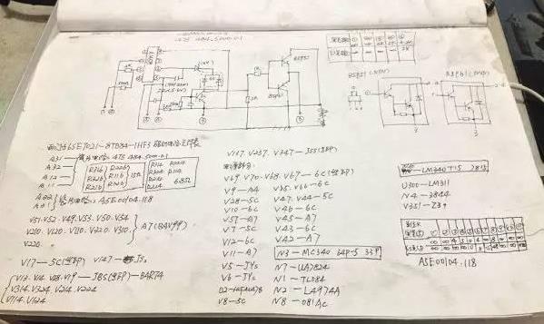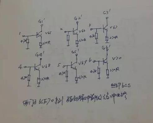 這是主板下來的驅(qū)動脈沖緩沖電路,此電路很簡單,用一個絲印為6C的三極管作為緩沖電路,測和有故障的那一路驅(qū)動相對應的三極管6C,發(fā)現(xiàn)其C E極漏電,更換6C,故障排除。由于6C CE極漏電就會使驅(qū)動光耦A1458初極內(nèi)的發(fā)光二極管提供工作回路,內(nèi)部發(fā)光二極管工作,陶瓷片就進入工作狀態(tài)了。