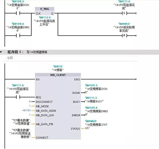 2.對同一個變頻器操作的時候,每調用一次MB_CLIENT指令的時候可以在DB塊里重新建立一個連接,連接參數(shù)里IP地址相同,ID號不同