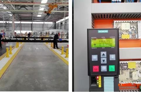 問題描述:從底盤線轉往綜合線的空中EMS的一個小車,在空載時,前進后退均正常。小車的前進后退是由2個同型號的變頻器(型號為SINAMICS V20)驅動2個同型號的電機來實現的。2個電機同時正轉時,小車前進;同時反轉時,小車后退。