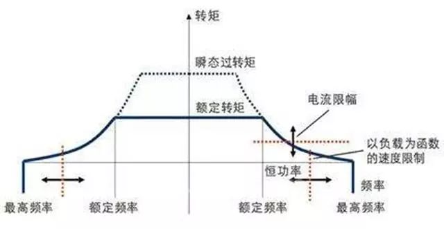 這種調(diào)速過程,電機(jī)的磁通保持恒定,電機(jī)的最大扭矩也是不變的,所以稱之為“恒轉(zhuǎn)矩調(diào)速”模式,可以簡單理解為在額定頻率以下的調(diào)速,都是這樣一種模式。