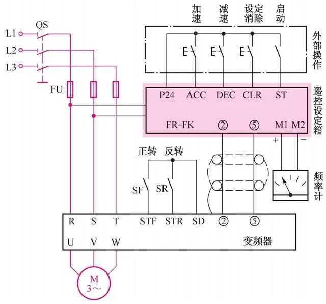 圖4-1 具有遙控設定箱的變頻器調速線路