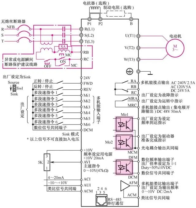 VFD-007V23A變頻器接線線路