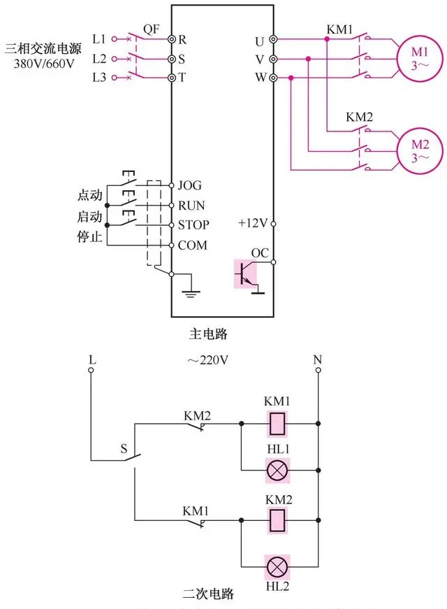 電動機變頻器的步進運行及點動運行線路