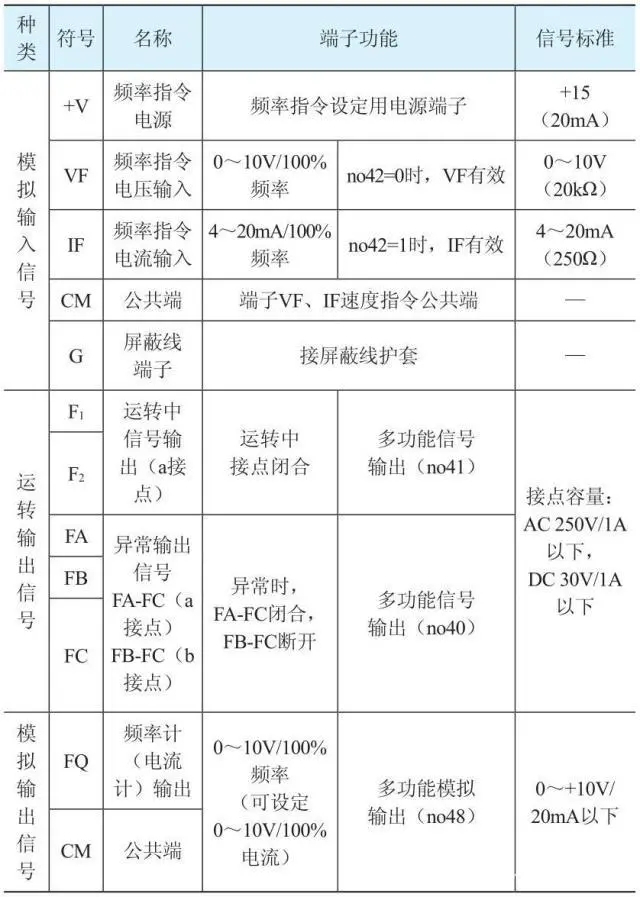 控制電路端子的符號、名稱及功能說明見表10-8。