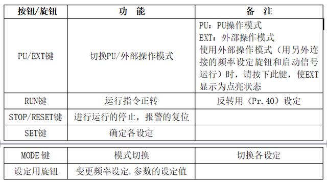 注意:只有當(dāng)Pr.160“擴(kuò)展功能顯示選擇”的設(shè)定值設(shè)定為“0”時(shí),變頻器的擴(kuò)展功能參數(shù)才有效。
