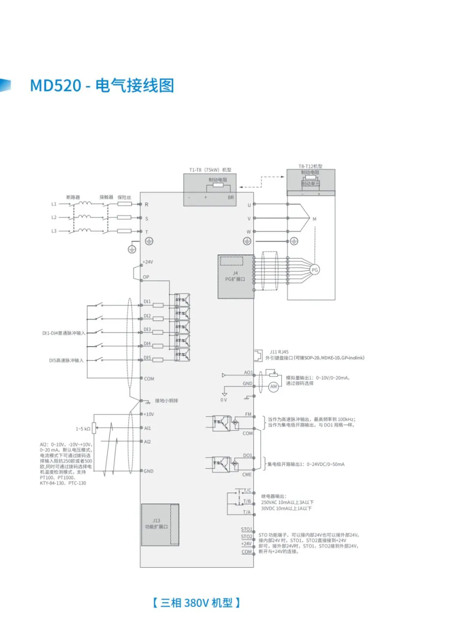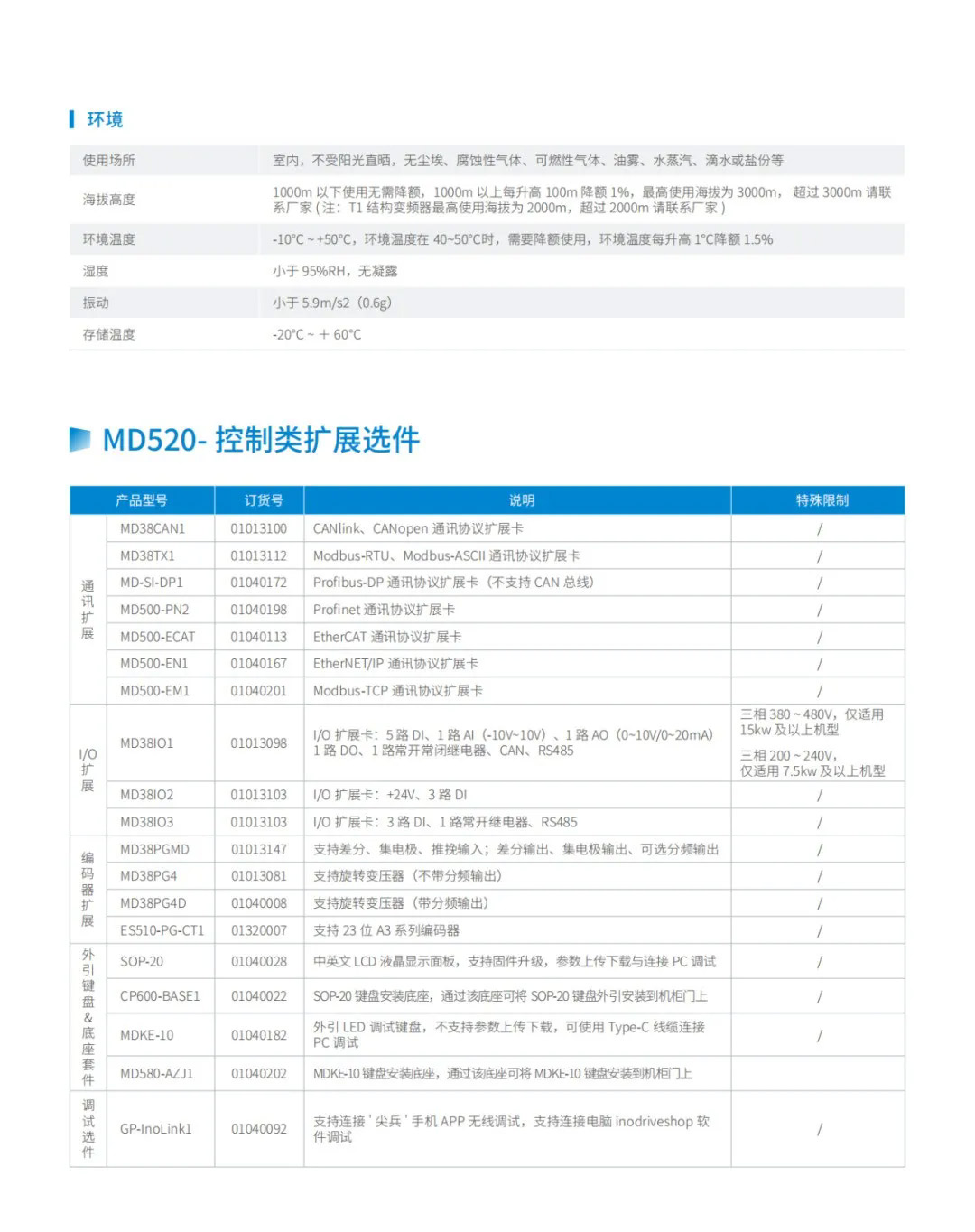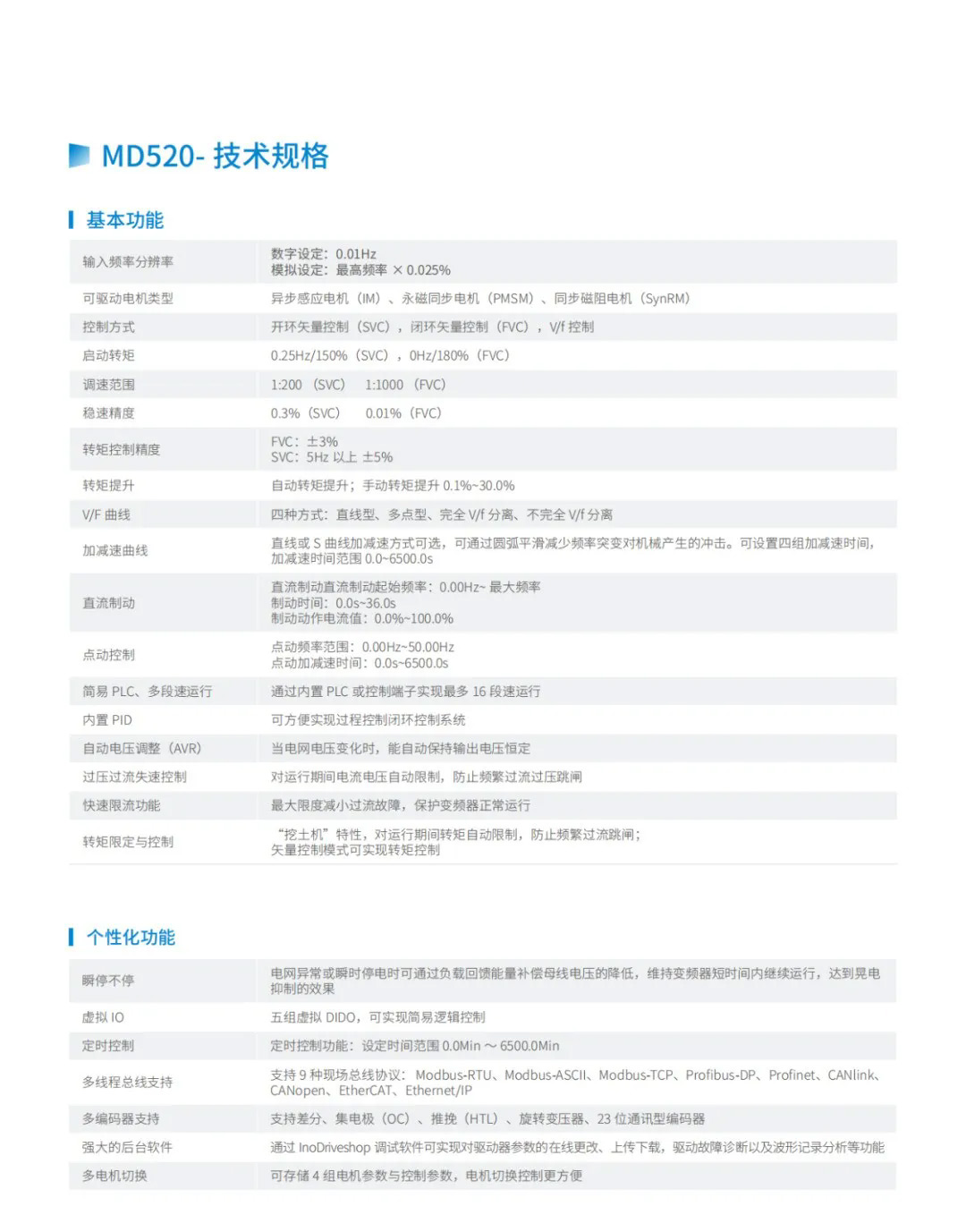 MD520系列變頻器是匯川的一款通用高性能電流矢量變頻器,主要用于控制和調節三相交流異步電機和三相交流永磁電機的速度和轉矩,可用于紡織、造紙、拉絲、機床、包裝、食品、風機、水泵及其他自動化生產設備的驅動。
