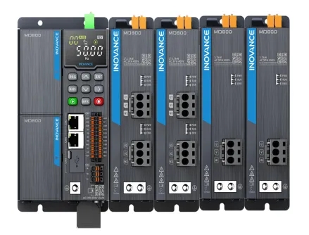 是匯川新一代低壓多點傳動系統,其與AM610 / H3U 等PLC 高速總線組網,實現一網調試,一網驅控,兼容異步及同步伺服電機,搭載23 bit 絕對值編碼器,實現變頻驅動良好效果。