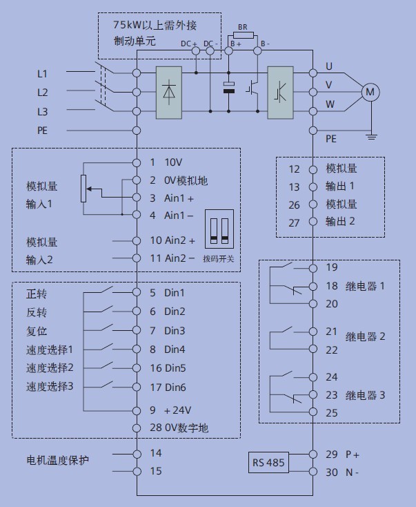 如果使用模擬量控制頻率需要設定模擬量相關參數