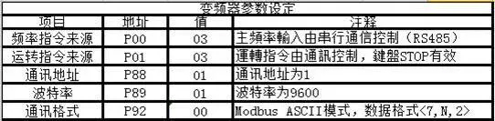 在通信之前我們要先設置變頻器的參數。需要設置的參數如下: