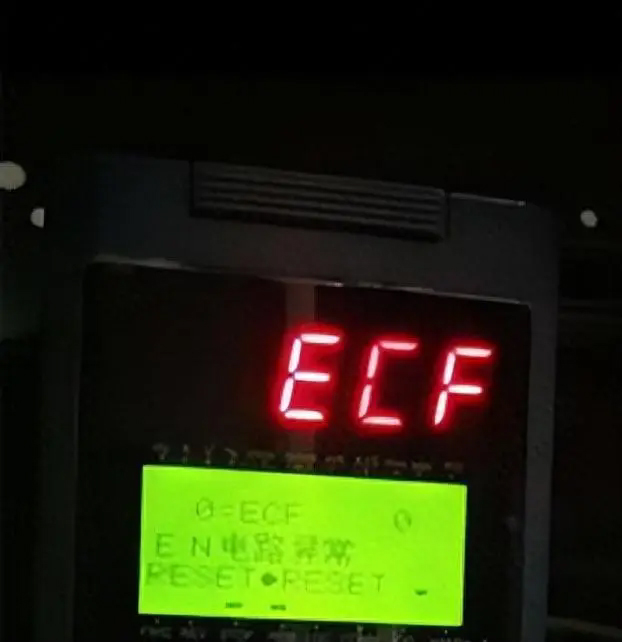 該機型以“程序卡住”、拒絕操作的方式,提示變頻器有OC故障存在!