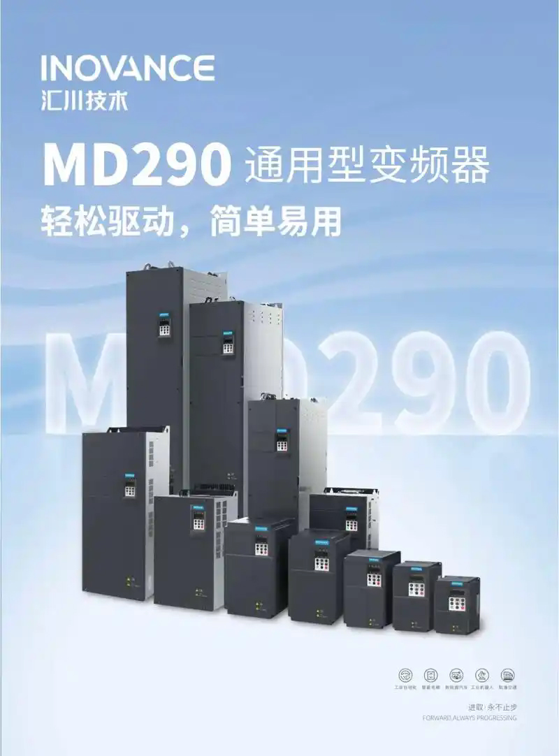 匯川變頻器MD290系列變頻是一款通用型變頻器,可以輕松驅動和控制異步電機,具備用戶可編程功能及后臺軟件監控、通訊總線功能,體積小,功能強大,性能穩定,滿足國際主流標準和認證。可應用于紡織、造紙、拉絲、機床、包裝、食品、風機、水泵等行業及各種自動化生產設備的驅動。